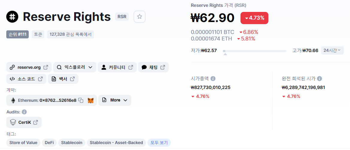 RSR 코인과 RSV 코인 두 가지로 나뉘어 있는데