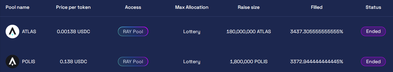 스타 아틀라스는 FTX 거래소, 아폴로-X, 레이디움 등 3곳에서 IDO를 진행했습니다.