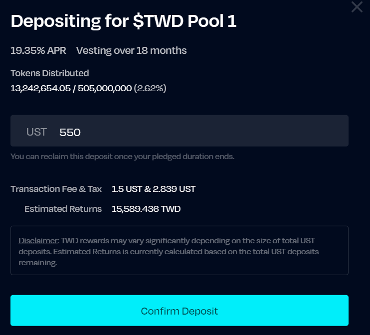 Eligibility : All persons who have deposited from 1,000 UST in POOL