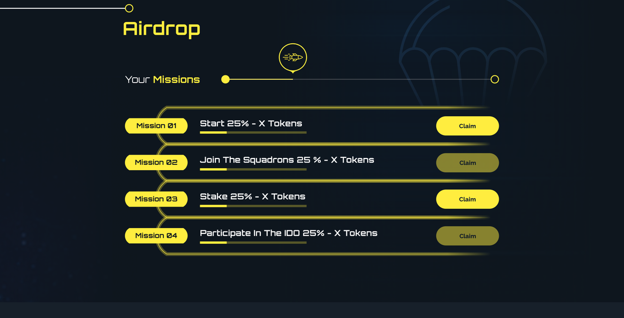 - 마지막 네 번째 25%는 IDO 참여자에게 해제됩니다. 5단계 티어 중에 하나를 달성하거나 스쿼드에 참여하면 됩니다.