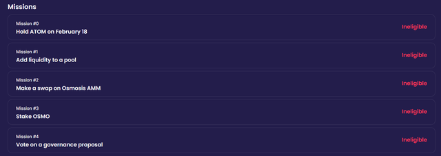 *Vote on a governance proposal : 거버넌스 제안에 투표하기2월 18일까지 아톰을 보유하는 미션은 이미 기한이 지났기에 할 수 없고요. 나머지 4개를 해보도록 하겠습니다.