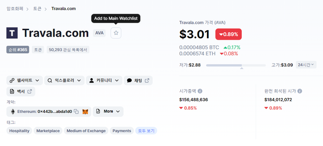 그리고 이번에 찾아보면서 처음 안 사실인데 트라발라 자체 토큰도 있더군요.