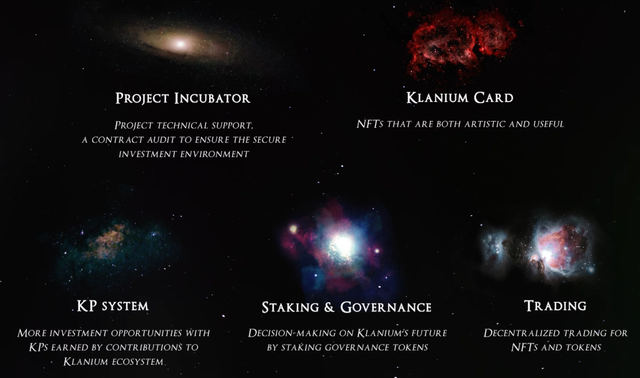 클레니움은 솔라니움(솔라나 기반)의 클레이튼 버전을 표방하는 것 같습니다.홈페이지에 여러 특징이 나와 있지만, 신규 프로젝트의 인큐베이터 역할을 하겠다는 것을 핵심 목표를 밝히고 있습니다.