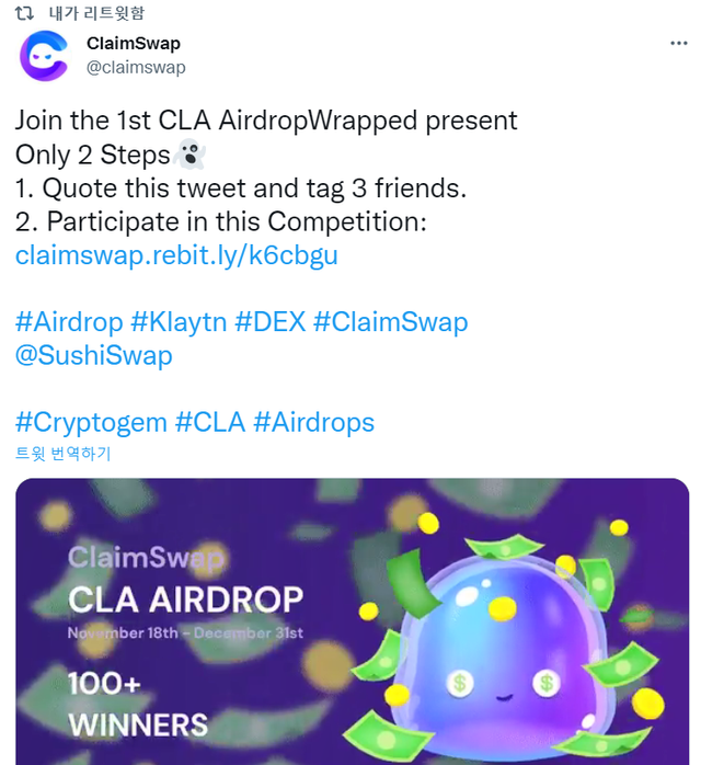 https://wn.nr/9UCsxj-클레임스왑 에어드랍 이벤트 트윗
