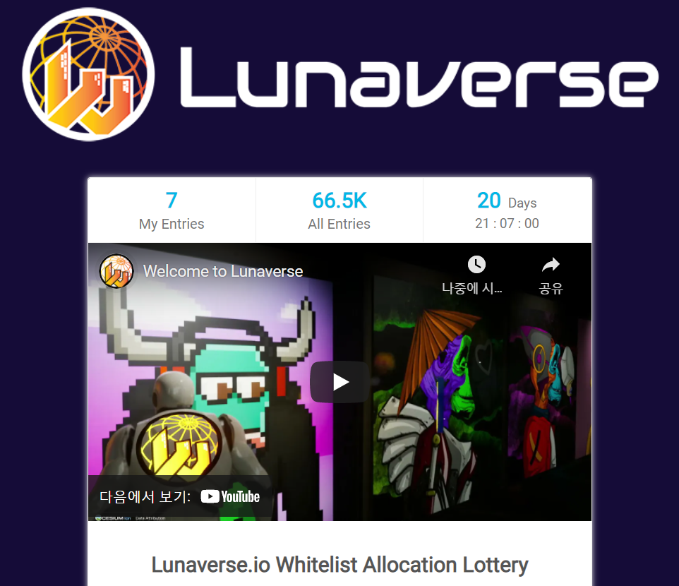- 루나버스 IDO 화이트리스트 추첨 참여 링크