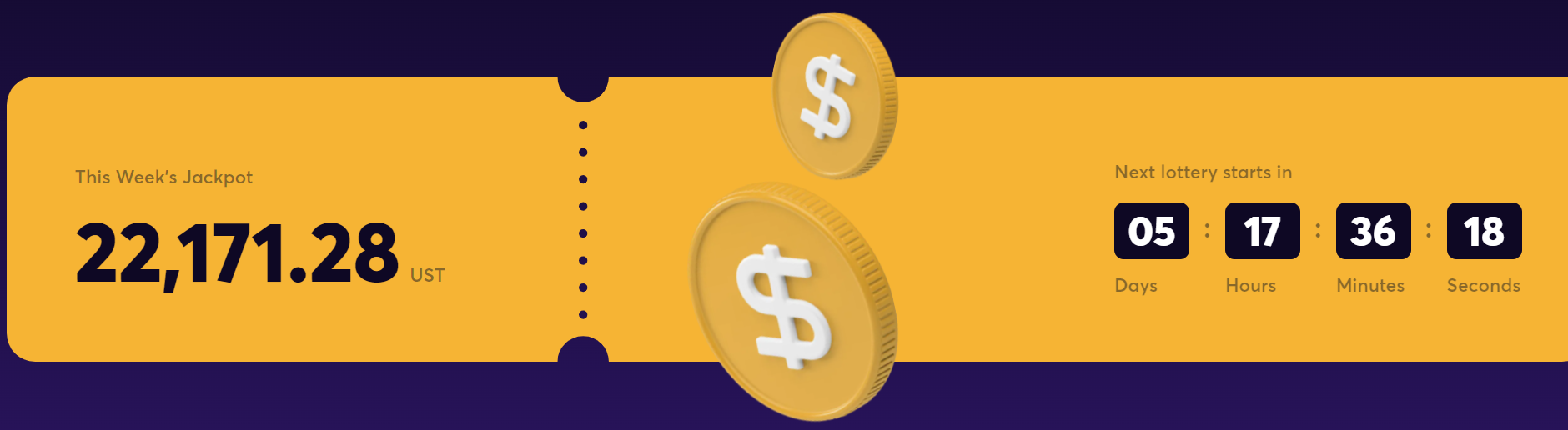 또, 추첨은 매주 열리고요. 이번주 당첨 금액은 22,212 UST 입니다.