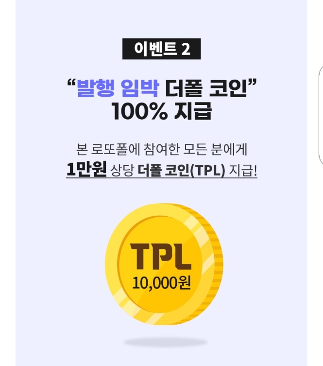 향후 발행될 1만원 상당의 더폴 코인(TPL)을 지급받게 됩니다.