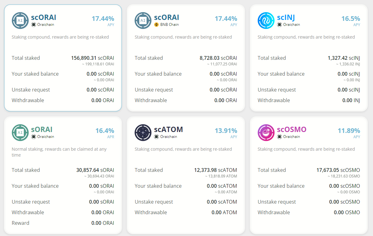 scORAI, sORAI의 형태로 스테이킹할 수 있는 것 같은데 16~17%의 APR을 보여주고 있습니다.