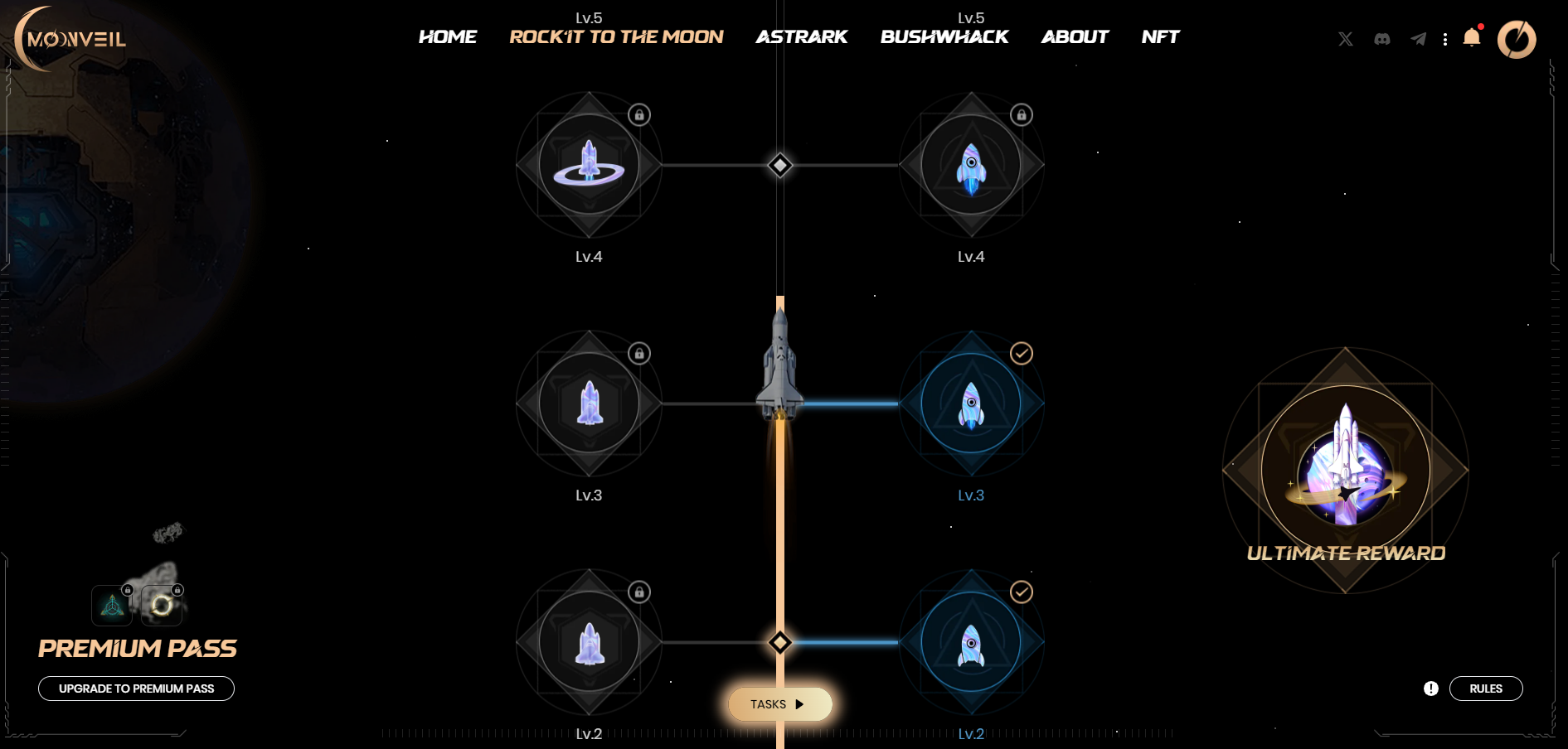 문베일의 시즌 시스템은 로열티 프로그램을 새롭게 업그레이드한 것으로, 이제부터 문워커는 시즌 시스템을 통해 더 많은 보상을 지속적으로 획득할 수 있습니다. 첫 번째 시즌인 '락잇 투 더 문'이 시작되었습니다! 이번 시즌에는 다가오는 $문라이즈 토큰 에어드랍을 위해 노력해 보세요.