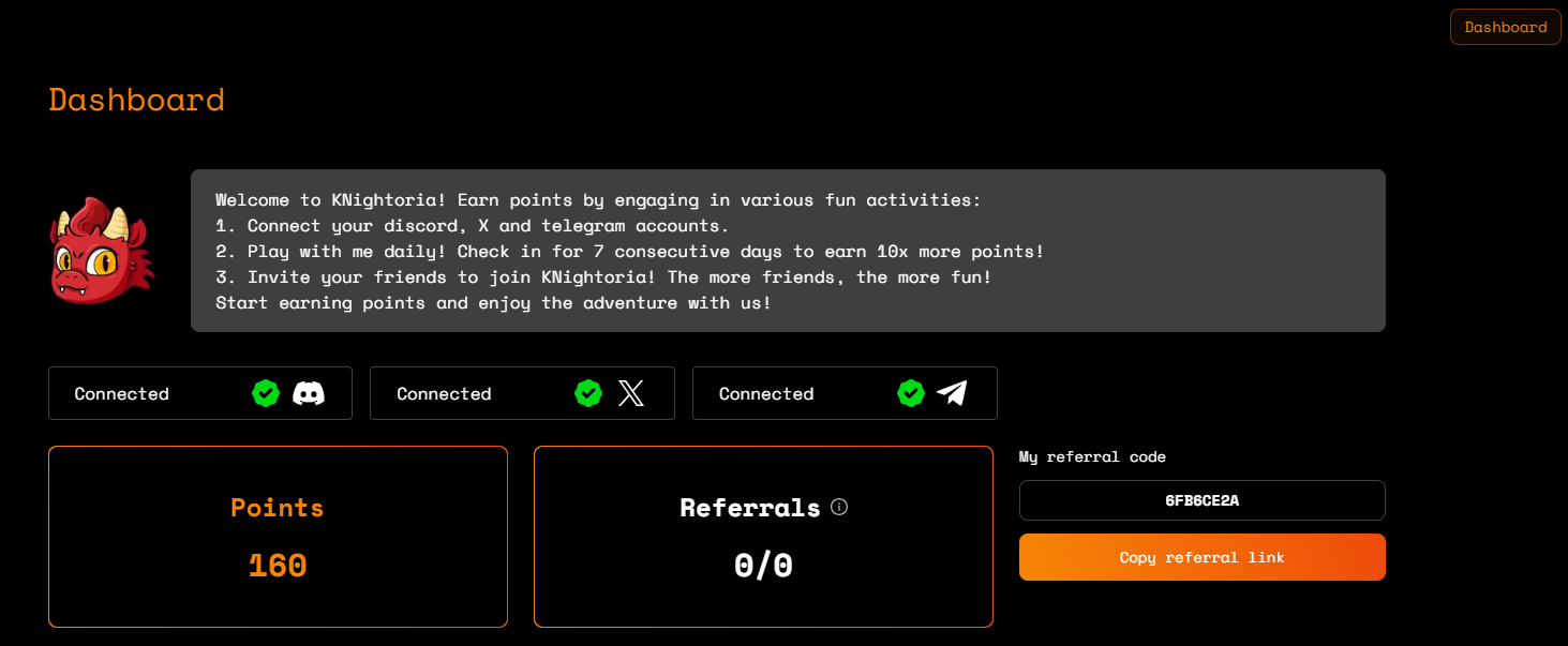 https://knightfury.io/?referral=6FB6CE2A현재는 디스코드, X, 텔레그램 계정을 연동만 시켜주면 됩니다.